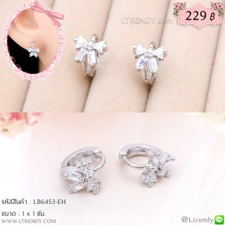 LB6453-EH ต่างหูห่วงสีเงินรูปโบว์