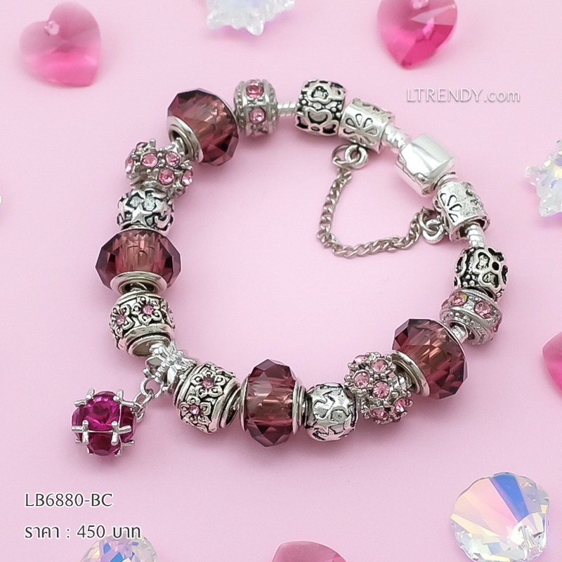 LB6880-BC กำไลชาร์มโทนม่วงเซตดาวดอกไม้