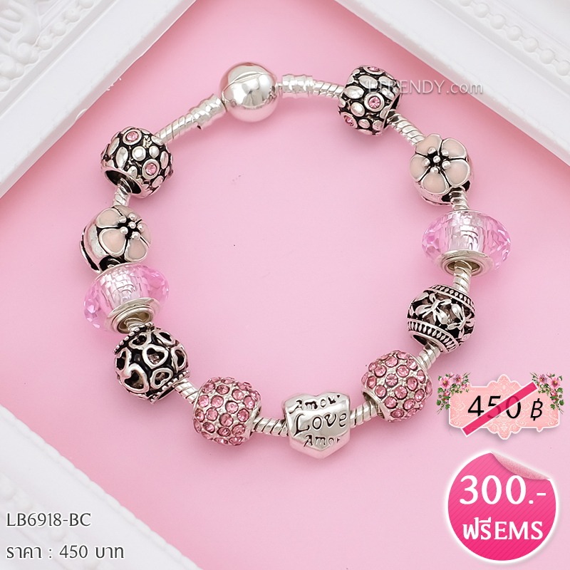 LB6918-BC กำไลชาร์มโทนชมพูเซตหัวใจ