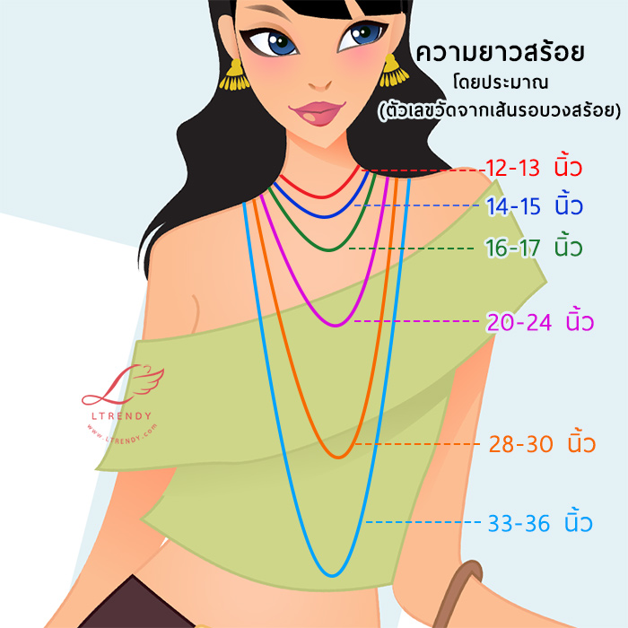วิธีวัดความยาวสร้อยคอเมื่อสวมใส่
