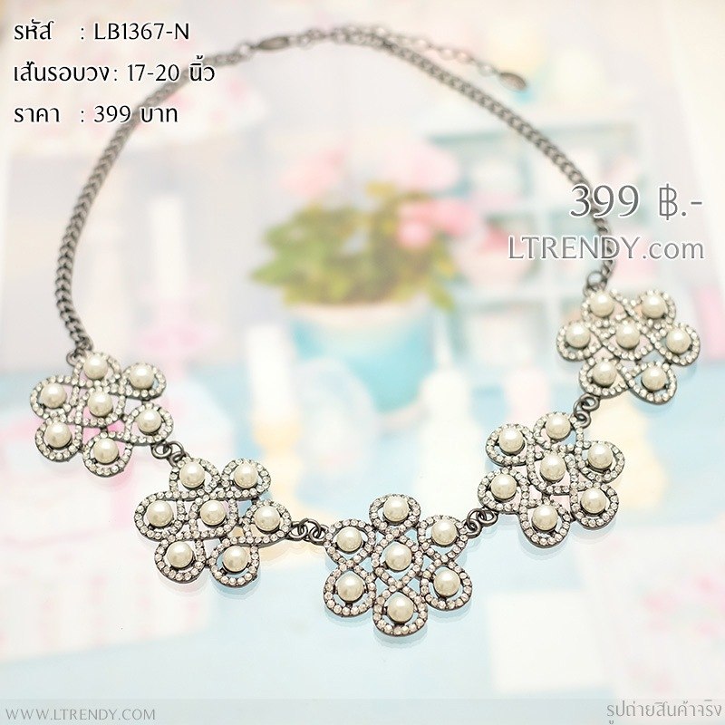LB1367-N สร้อยคอดอกไม้เกสรมุกงานรมดำ