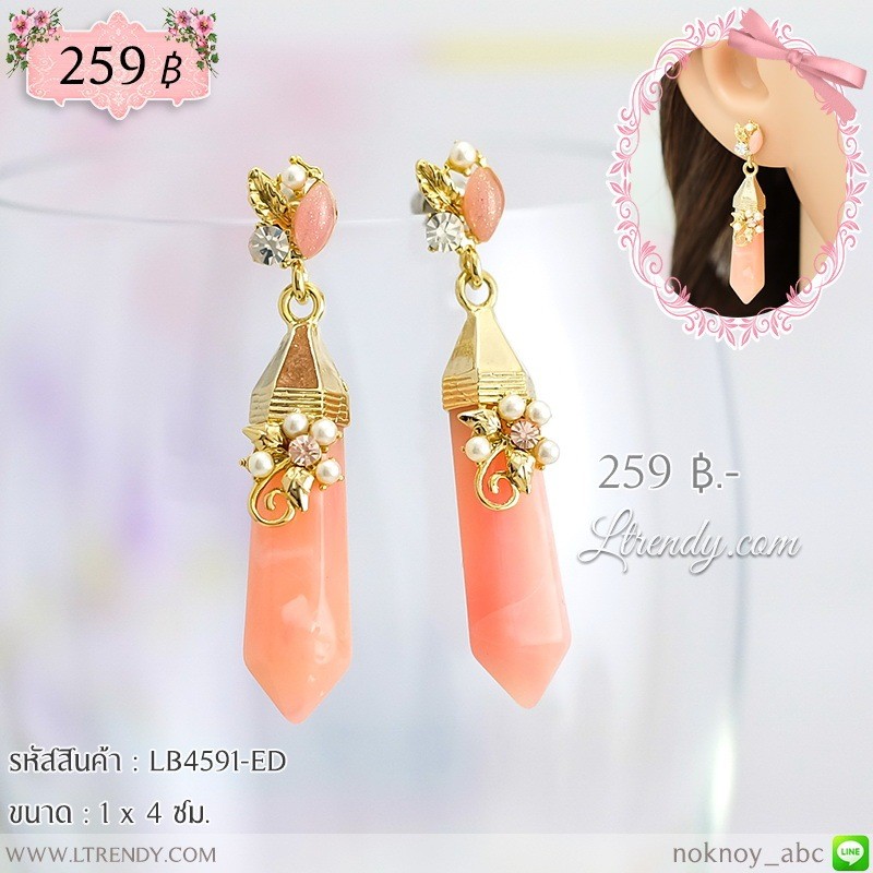 LB4591-ED ต่างหูแท่งยาวสีชมพู