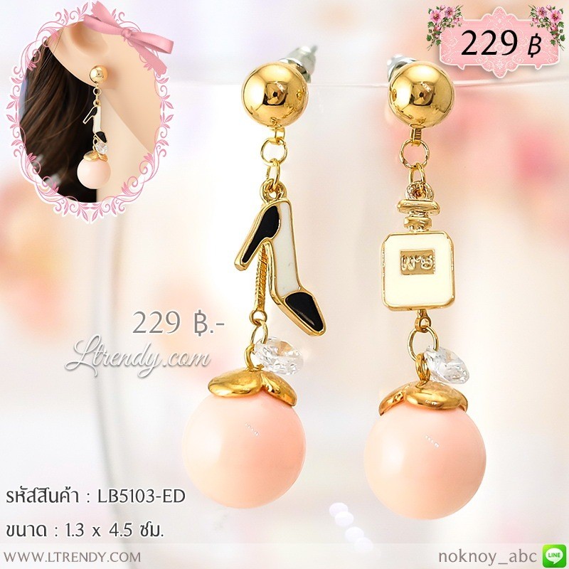 LB5103-ED ต่างหูลูกตุ้มสีชมพู