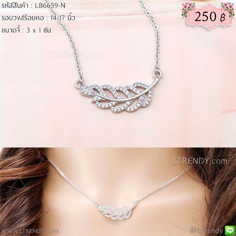 LB6659-N สร้อยคอใบมะกอกสีเงินใบโต