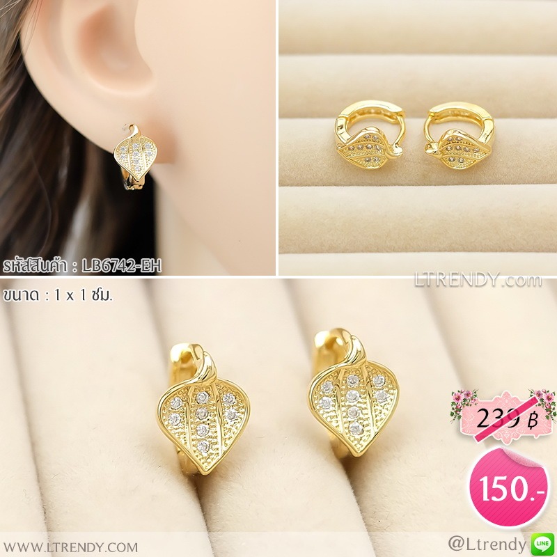 LB6742-EH ต่างหูห่วงใบโพธิ์