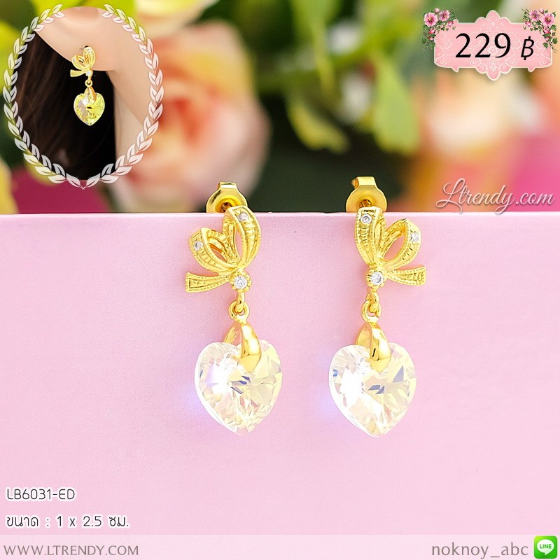 LB6031-ED ต่างหูโบว์ห้อยหัวใจ