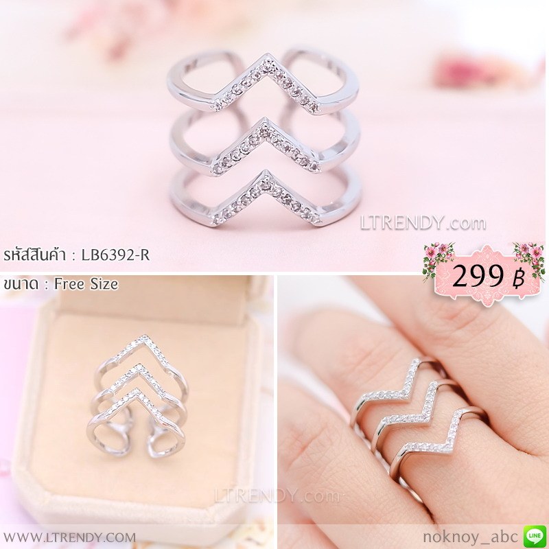 LB6392-R แหวนตัววีสามชั้นสีเงิน