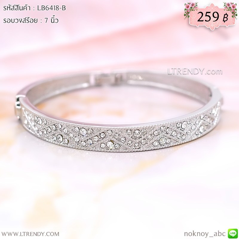 LB6418-B กำไลสีเงินประดับเพชร