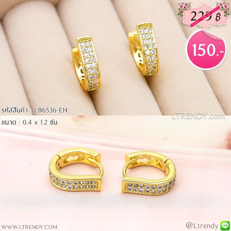 LB6536-EH ต่างหูห่วงสีทองเพชรเรียง